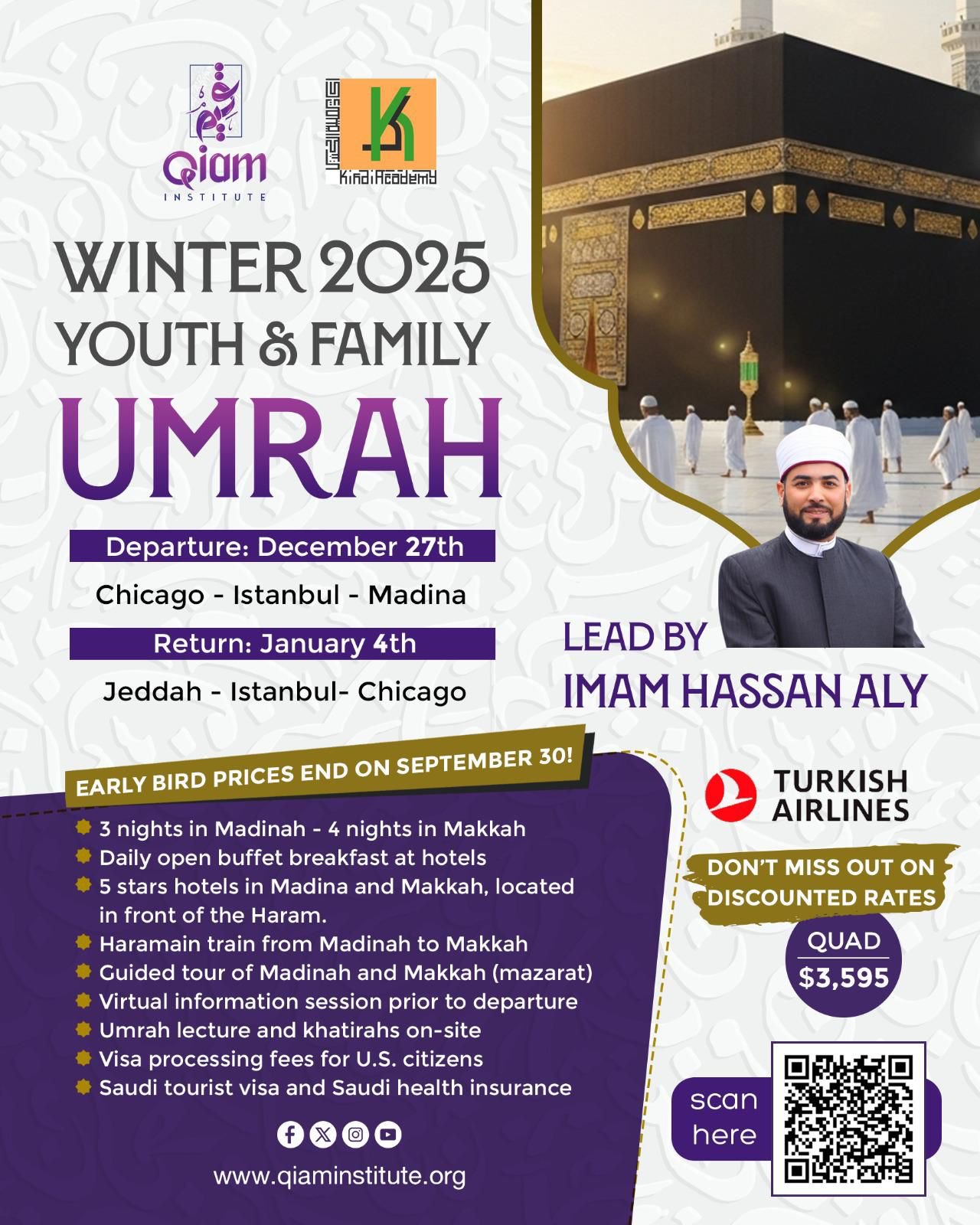 Alhamdulillah, we are excited to announce our first-ever Umrah trip organized with Qiam Institute – Kindi Academy and led by our very own Imam Hassan Aly! ππ